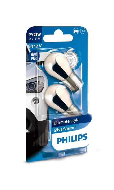Philips(フィリップス) 自動車用バルブ&ライト 白熱球 ウインカー S25(PY21W) 12V 21W シルバーヴィジョン アンバー ステルスタイプ 2個入り 車検対応 PHILIPS SilverVision 12496SVB2
