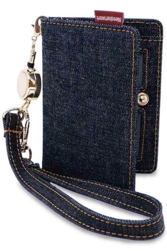 [ニードネットワーク] 日本が誇るデニム パスケース 定期入れ メンズ リール付き 二つ折り インディゴブルー