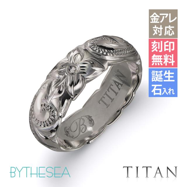 指輪 金属アレルギー対応 リング 純チタン ハワイアンジュエリー リング 刻印 無料 誕生石入れ可 7号〜29号 太め 幅約5.5mm ギフト対応可 大きいサイズ つけっぱなし 変色しない 金アレ対応 プレゼント お正月 成人祝い 【品番:TIR202】