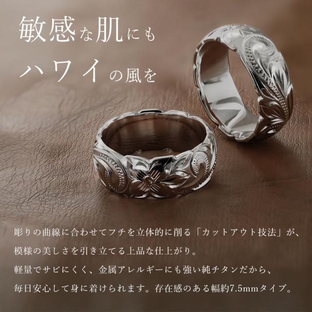 ハワイアンジュエリー 純チタン リング カットアウト 約7.5mm幅 指輪