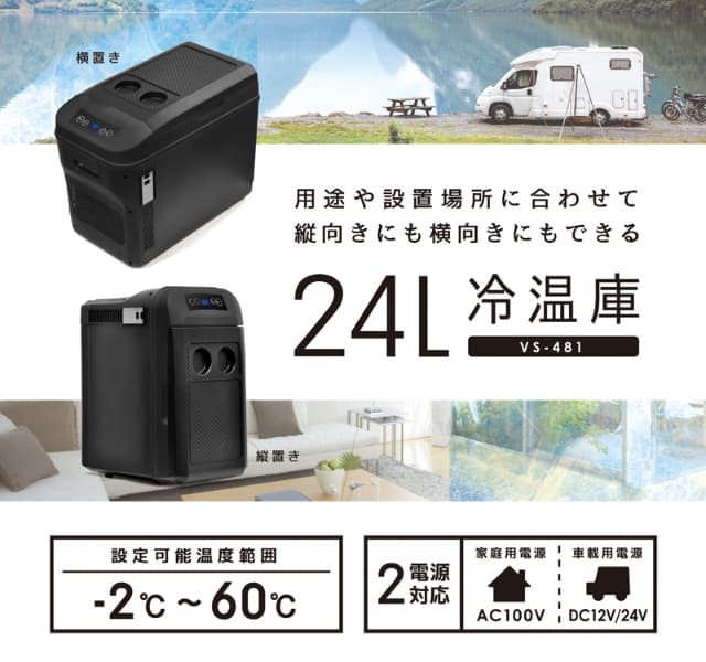 横置きでも縦置きでも使える24L冷温庫