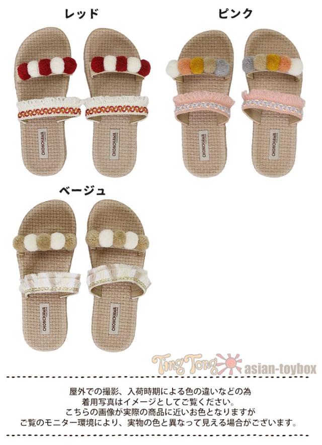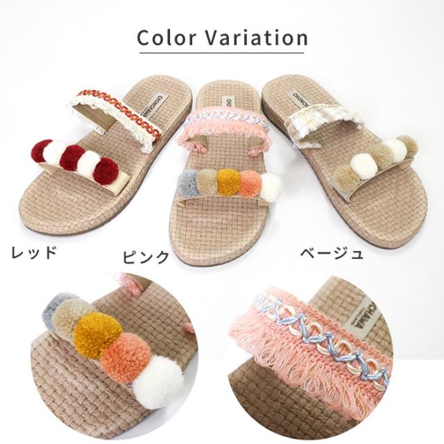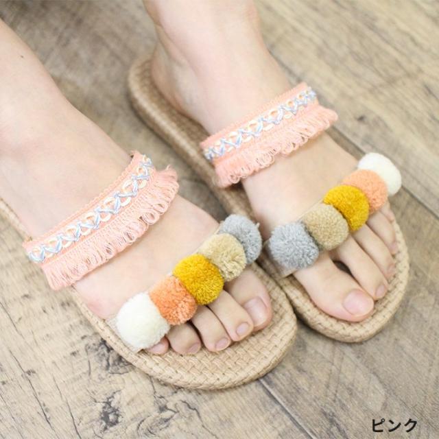 レースサンダル レディース ナチュラル 天然素材 ジュート 夏 !ポンポン リゾート ビーチ 軽い 可愛い 室内履き