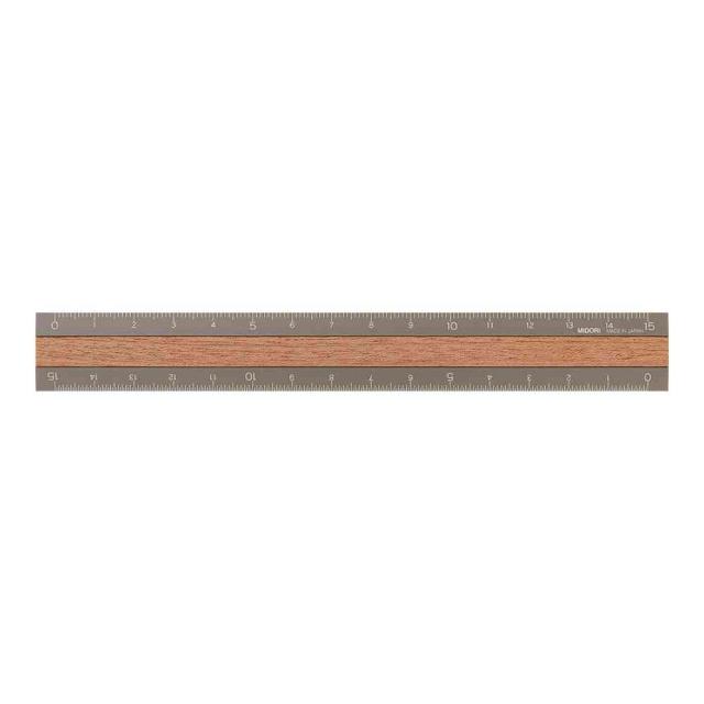 ミドリ アルミ&ウッド定規<15cm> グレー 1個