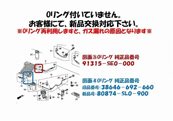 ※Oリングは必ずお客様で新品手配ください。(Oリング純正品番号 91315-SE0-000/38646-692-660 代替え→80874-SL0-900)