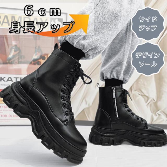 [ALVEIN] バイクブーツ ワークブーツ 厚底 シークレットブーツ メンズ サイドジップ 英国風 オートバイブーツ ハイトップ レザーブーツ 背が高くなる靴 身長UP 父の日 夏ギフト