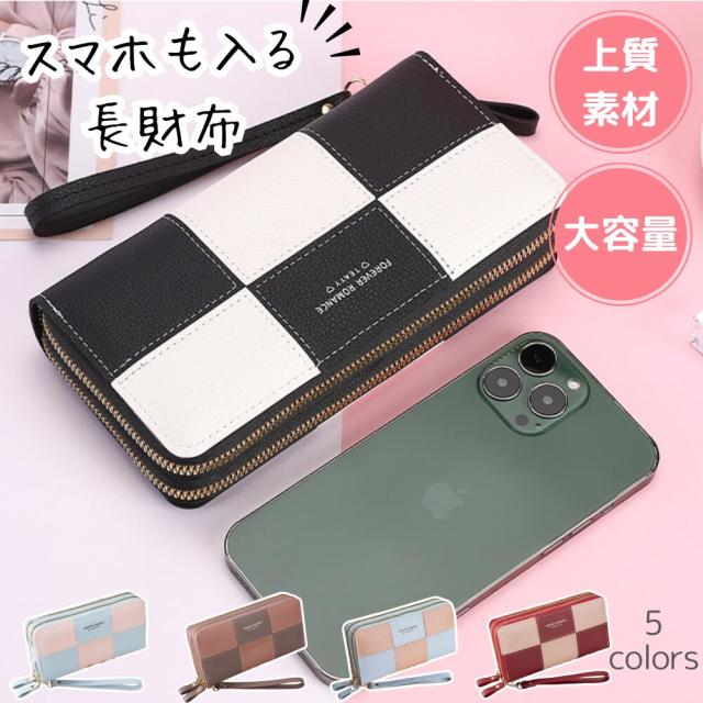[ALVEIN] 財布 市松模様 チェック柄 格子柄 チェック ツートーン カラフル レディース ダブルジッパー 小銭入れ カード収納 多機能 大きい財布 大容量 大きめ 夏ギフト お中元