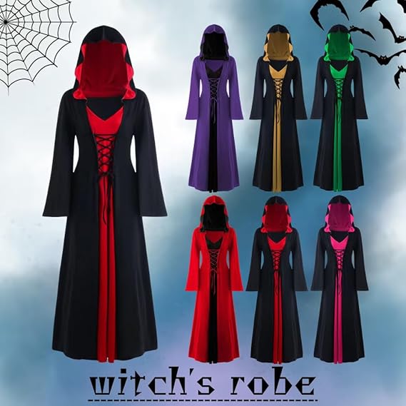 [ALVEIN] コスプレ 魔女 魔法使い ハロウィン ヴィラン ワンピース フード ローブ 仮装 変装 ロングワンピース パーティー