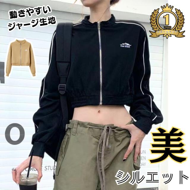 [ALVEIN] トラックジャケット ショート丈 クロップド ジャージ レディース フルジップ 韓国 ダンス ヒップホップ KPOP Y2K 長袖 へそ出し 薄手 ミニ タイト 夏ギフト