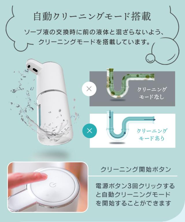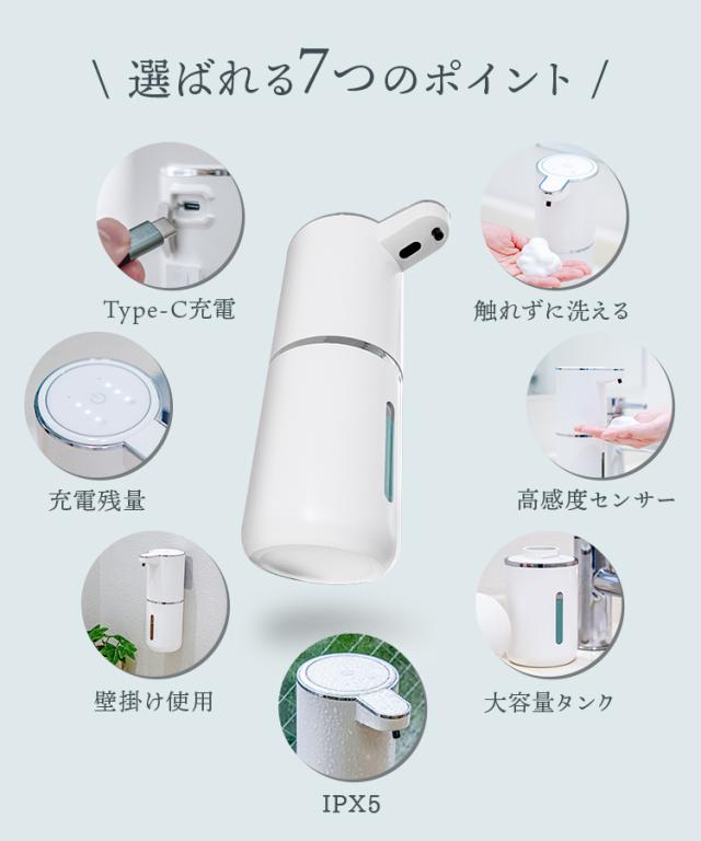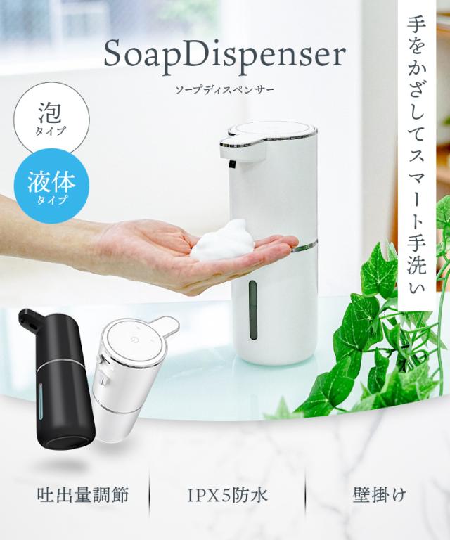 ソープディスペンサー 自動 泡 液体 おしゃれ 吐出量4段階調整 防水 IPX5 充電式 自動洗浄 380ml 壁掛け ハンドソープ ディスペンサー 食器用洗剤 オートディスペンサー 大容量 キッチン 洗面台 市販ソープ対応 手洗い せっけん 予防 送料無料