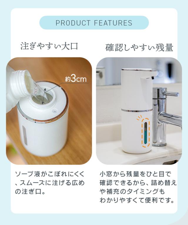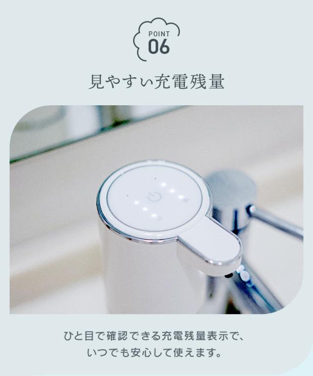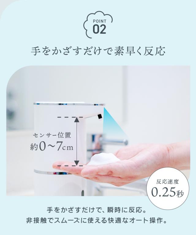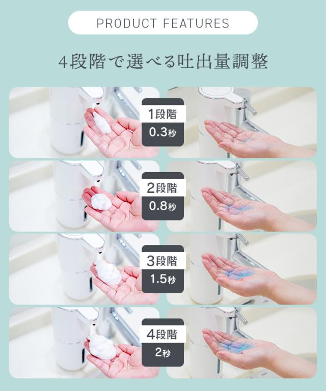 - 注文してすぐに届きました。 ある程度充電されていたので、届いてすぐに使うことができ、とても助かりました。 ふわふわの泡なので、少量でもしっかり洗えます。 キッチンに置いていますが、反応も速いので料理中もササッと手が洗えて効率良いです。