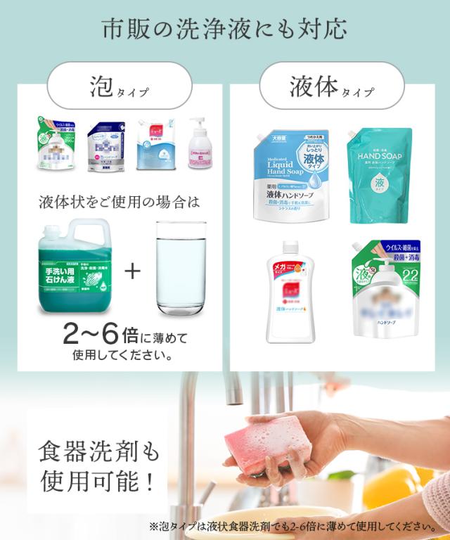 泡だけでなく液体洗剤にも対応し、用途に合わせてもっと便利に使えます!