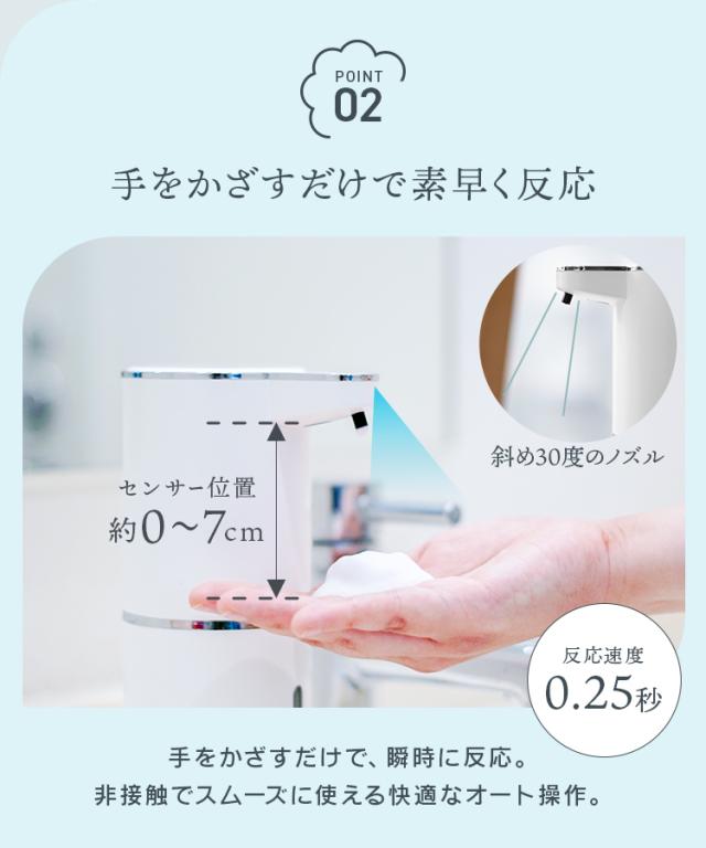 非接触で自動的にきめ細やかな泡が出てくるオートディスペンサー。