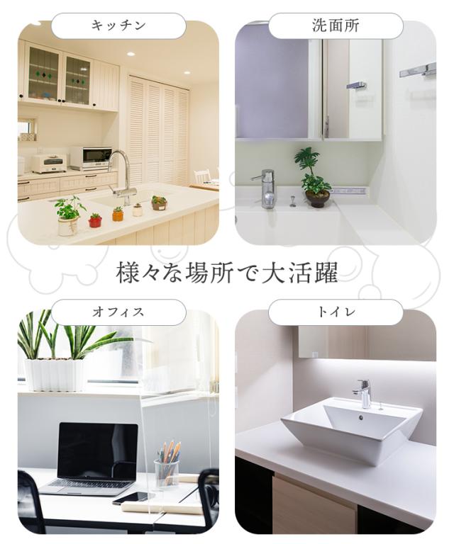 オシャレで清潔感のあるデザインなので、 ご家庭の洗面所やキッチンはもちろん、オフィスや店舗、医療施設、公共スペースなど多様な場所でも活躍します。