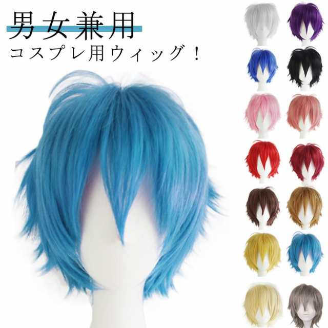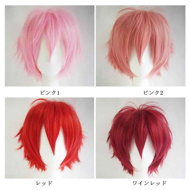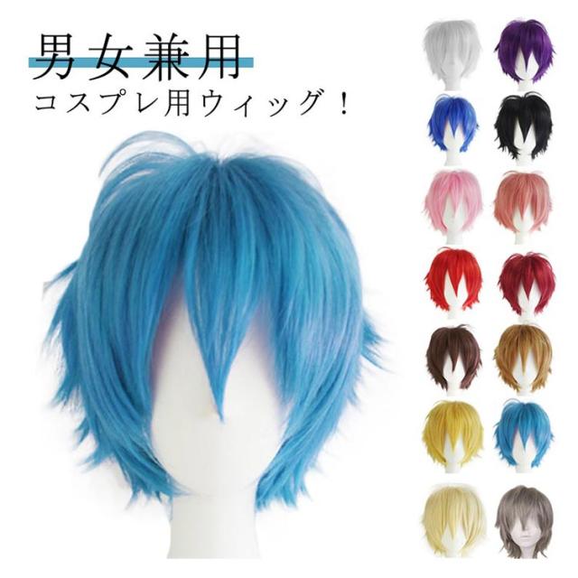 コスプレ ショートウィッグ フルウィッグ 金髪 自然 ハロウィン ウィッグ ウイッグ 耐熱 コスプレウィッグ 黒髪 仮装 アニメ 黒 全頭かつら カラーウィッグ 巻き かつら ウィッグ 白 パープル ゴールド ピンク シルバー レッド ブルー 男装 女装 つけ毛 舞台