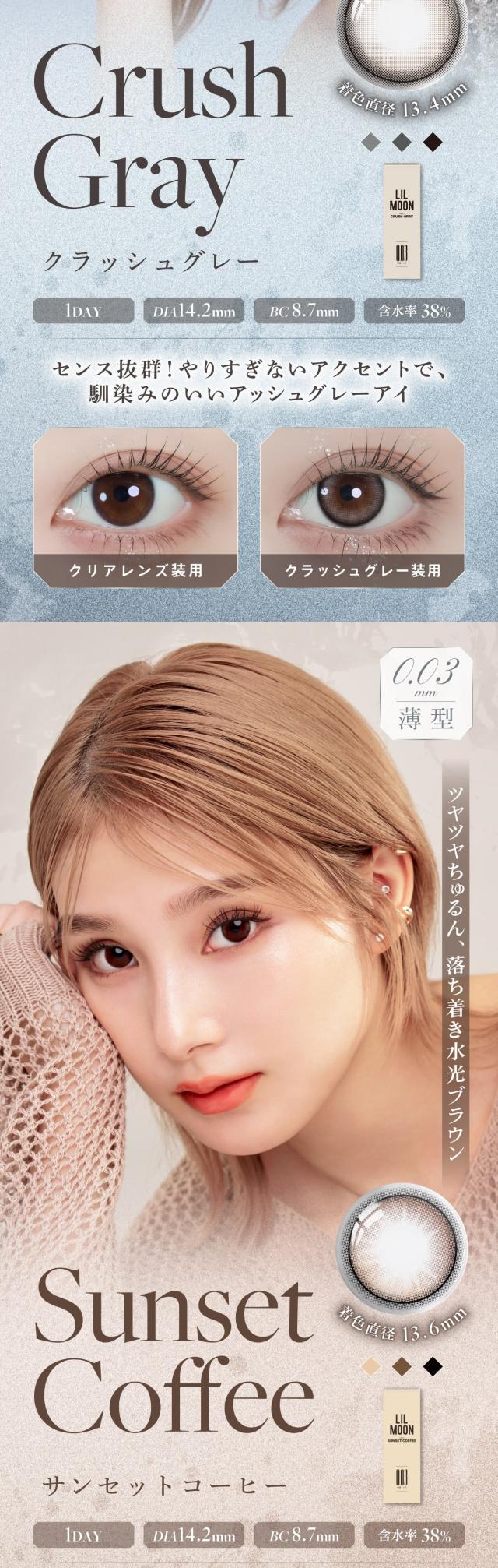 リルムーン 0.03 ゼロ ワンデー 度あり 度入り カラコン 1箱10枚 lilmoon ZERO サンセットコーヒー クラシックグレー 南部桃伽 コンタクト UVカット 紫外線対策