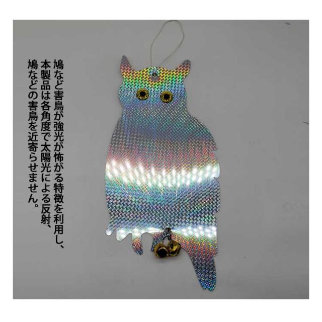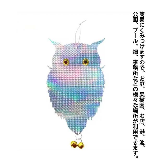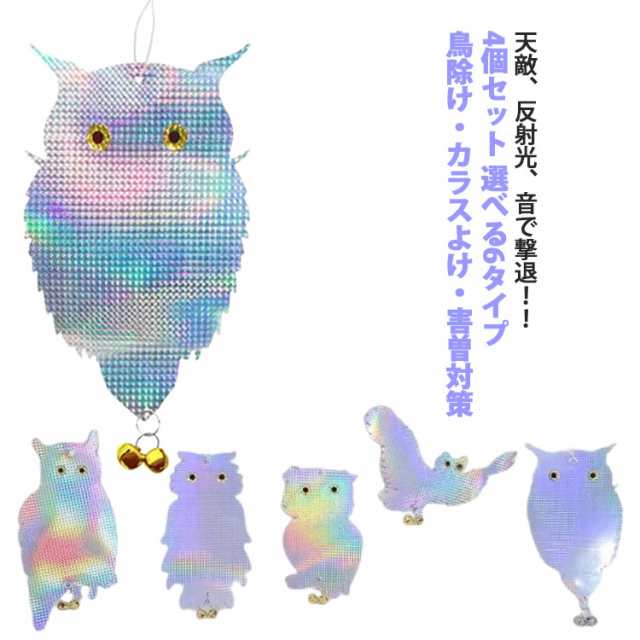 | 天敵、反射光、音で撃退!! 4個セット 選べる6タイプ 鳥除け・カラスよけ・害曽対策 耐候性が優れている材料を使い、柔軟性もいいので、強風にて壊されにくいです。 鳩など害鳥が強光が怖がる特徴を利用し、本製品は各角度で太陽光による反射、鳩などの害鳥を近寄らせません。 特大サイズと迫力のある大きな目で鳥を威嚇して近寄らせません。 また、ベル付きで鳥が嫌う大きな鈴の音で撃退します!鳥が傷をつけない前提で鳥よけできます。 天敵の姿、光、音で鳥を遠ざける環境面でも優しい素材を使用。無害なので安心して植物や住環境を守ります。 簡易にくみつけますので、お庭、果樹園、お店、港、池、公園、プール、畑、事務所などの様々な場所が利用できます。 | |