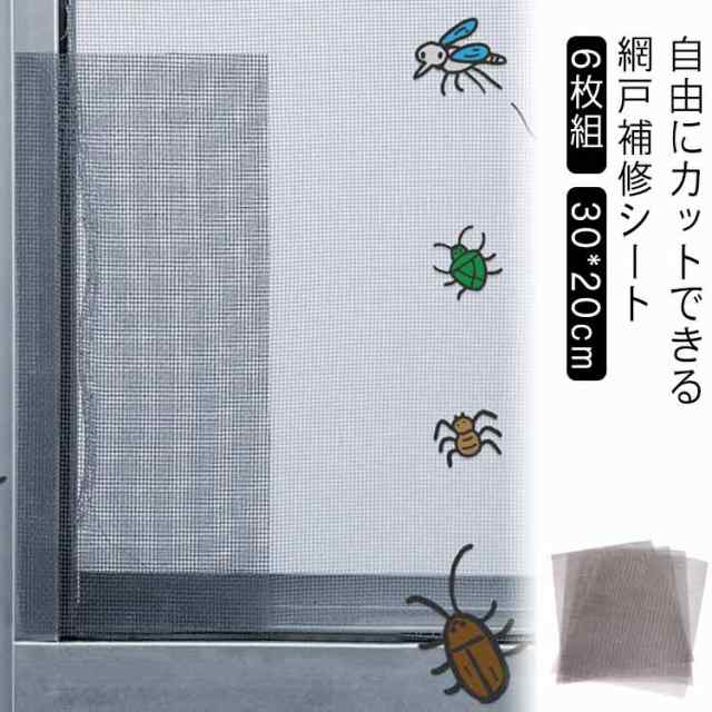 | 6枚組 自由にカットできる 網戸補修シート 30*20cm 網戸の室内側に、補修したい部分とサッシ枠に重ねるように貼り付けてください | |