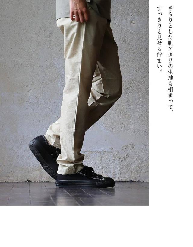 ・独特なカラーで見た目からは想像出来ないような、涼しさと動きやすさを持ったイージーパンツ。