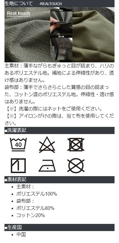 [素材]主素材:ポリエステル100% 袋布部:ポリエステル80% コットン20%