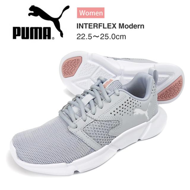 【箱アウトレット】PUMA INTERFLEX Modern ローカット スニーカー シューズ レディース 22.5 23 23.5 24 24.5 25 グレー 192805 06 プーマ インターフレックス モダン 婦人 女性 靴 レースアップ 紐 ひも 軽量 メッシュ gray dawn-bridal rose sh2172