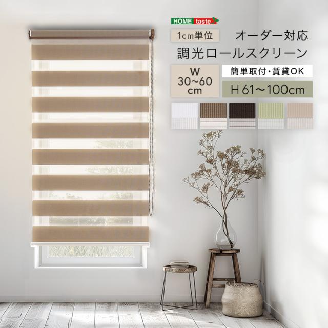 調光ロールスクリーン サイズオーダー 光と風を調節 5色 幅30〜60cm×高さ61〜100cm 日本製