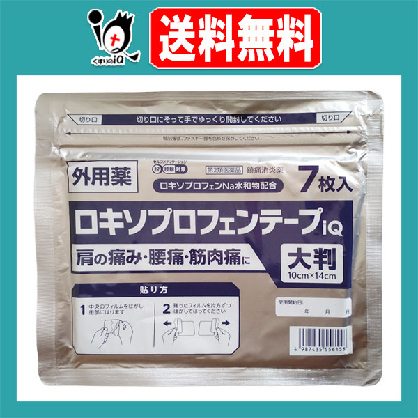 【第2類医薬品】★ロキソプロフェンテープiQ 大判 ラミネート袋(箱なし) 7枚入【ラクール薬品】肩こり 肩コリ 腰痛 関節痛 筋肉痛 打撲 捻挫 背中 湿布 大判 炎症 鎮痛 ロキソニン ロキソプロフェンナトリウム