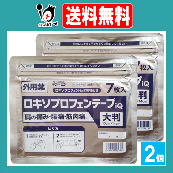 【第2類医薬品】★ロキソプロフェンテープiQ 大判 ラミネート袋(箱なし) 7枚入×2個セット【ラクール薬品】肩の痛み、腰痛・筋肉痛に!浸透して効く 1日1回24時間効果が持続 ロキソプロフェン テープ剤 シップ 鎮痛消炎薬 鎮痛消炎剤