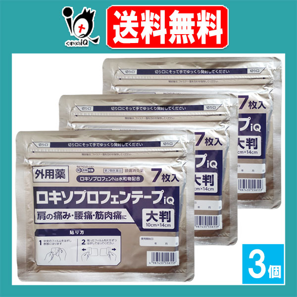 【第2類医薬品】★ロキソプロフェンテープiQ 大判 ラミネート袋(箱なし) 7枚入×3個セット【ラクール薬品】肩の痛み、腰痛・筋肉痛に!浸透して効く 1日1回24時間効果が持続 ロキソプロフェン テープ剤 シップ 鎮痛消炎薬 鎮痛消炎剤