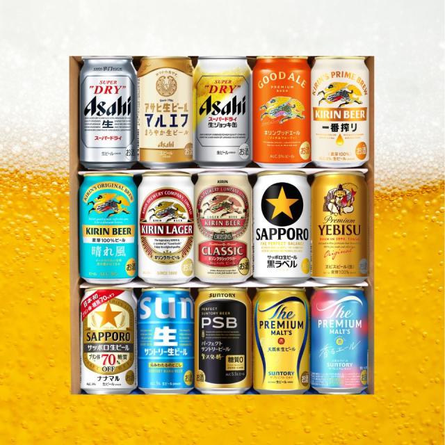 ビールギフト 国産ビール 飲み比べ 15本セット 詰め合わせ スーパードライ マルエフ 生ジョッキ缶 グッドエール 一番搾り 晴れ風 キリンラガー クラシックラガー 黒ラベル エビス ナナマル サン生 PSB プレモル 香るエール 缶ビール ギフトセット 内祝い お返し 男性
