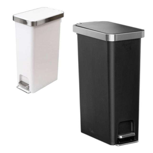 ソフトクローズ・オープンのステップ式ゴミ箱40L。フタとフレームが別々に開閉。スリムタイプなので置き場所に困りません。表面は指紋が付きにくいマット加工。