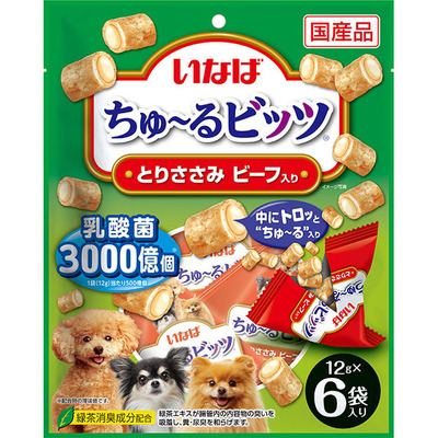 【12個セット】いなば ちゅ〜るビッツ とりささみ ビーフ入り 12g×6袋