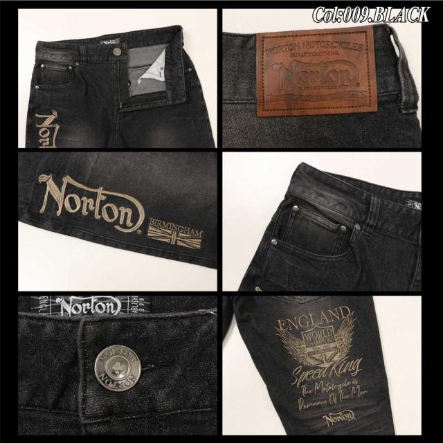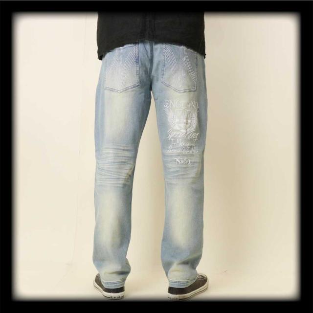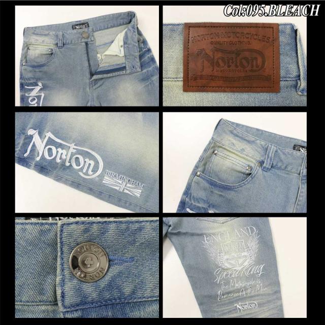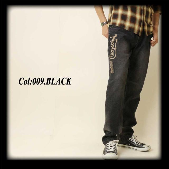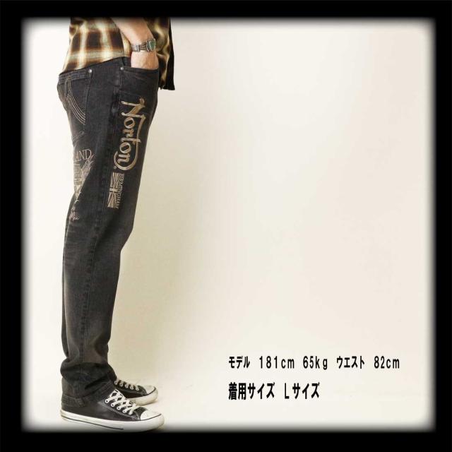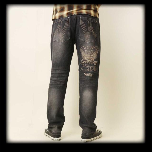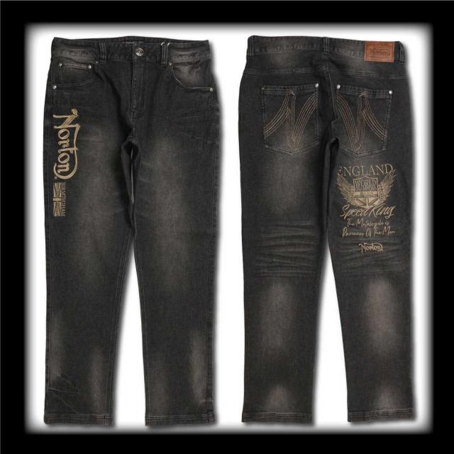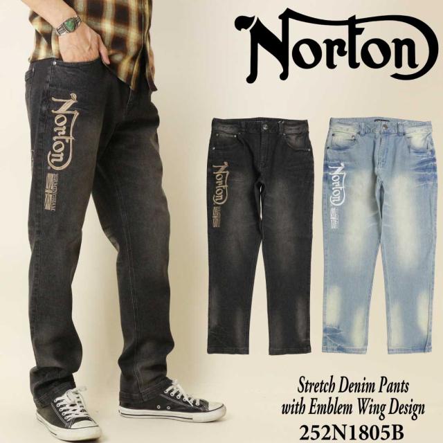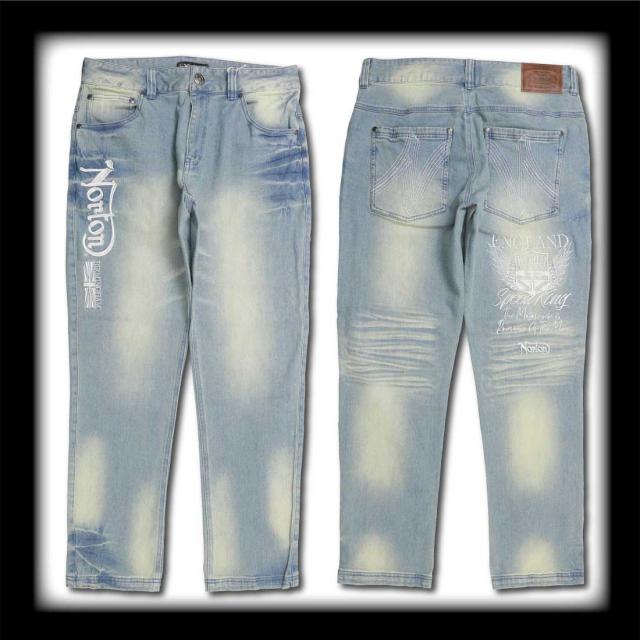 Norton ノートン 服 デニム ジーンズ 252N1805B ストレッチ エンブレム ウイング デニムパンツ 刺繍 ブラスト加工 シワ加工 メンズ アメカジ バイカー