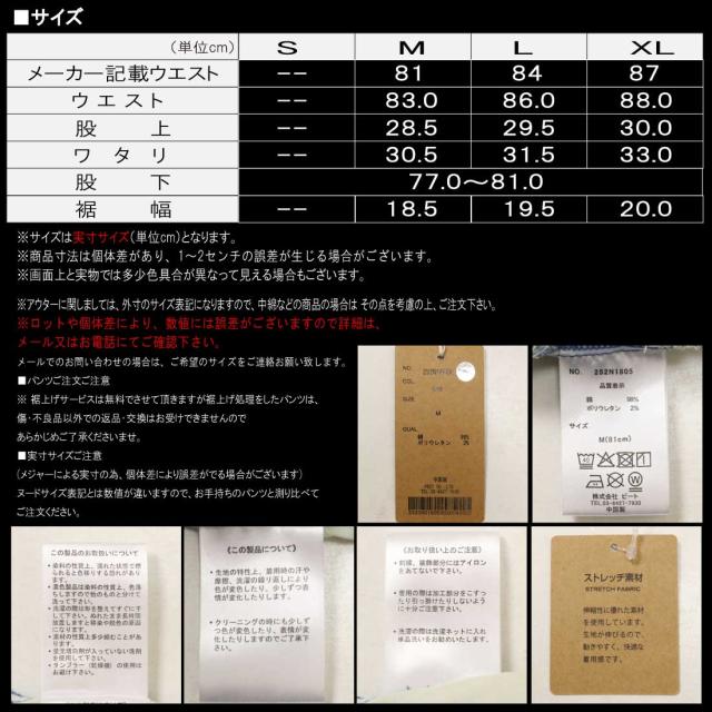 ※ 裾上げサービスは無料でさせて頂きますが裾上げ処理をしたパンツは、