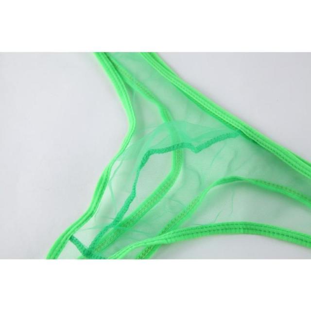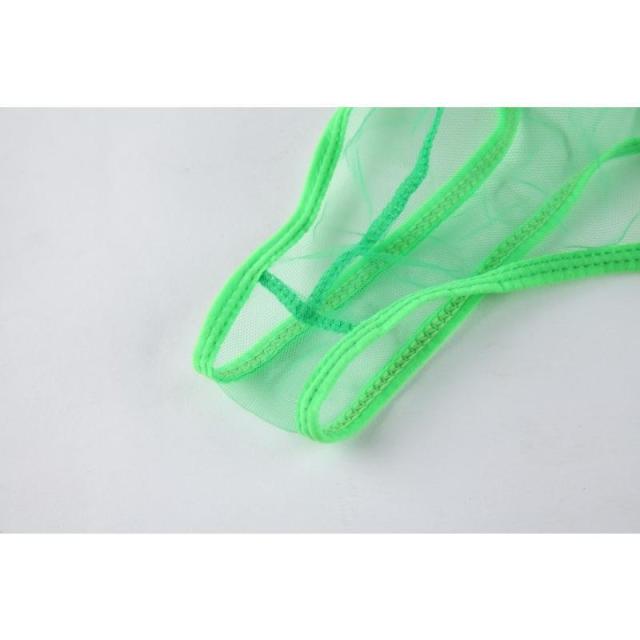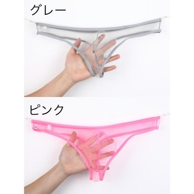 透け感のあるメッシュ生地のメンズ用Tバックショーツ。