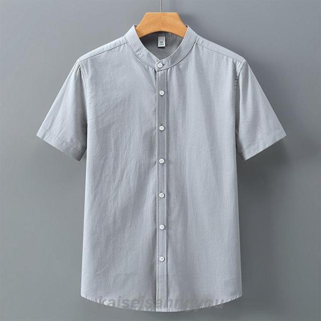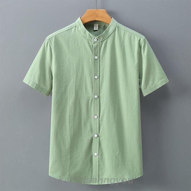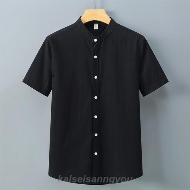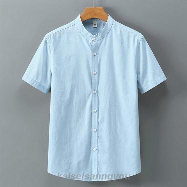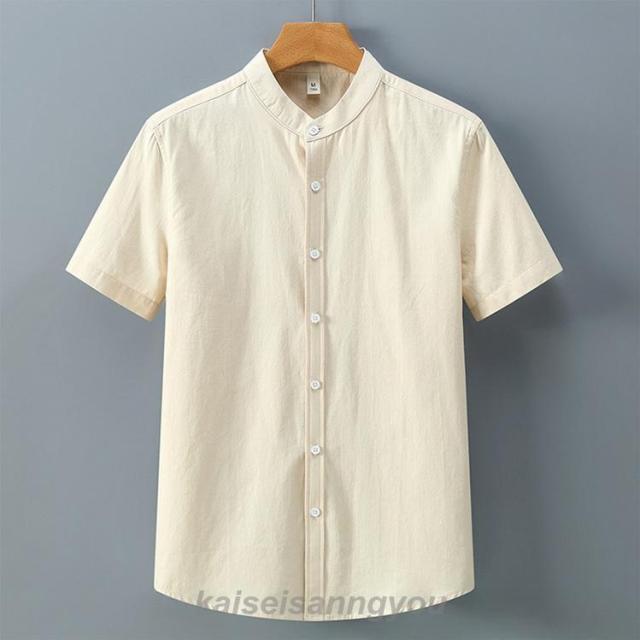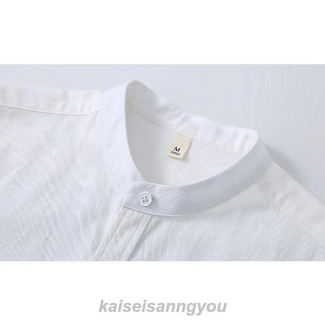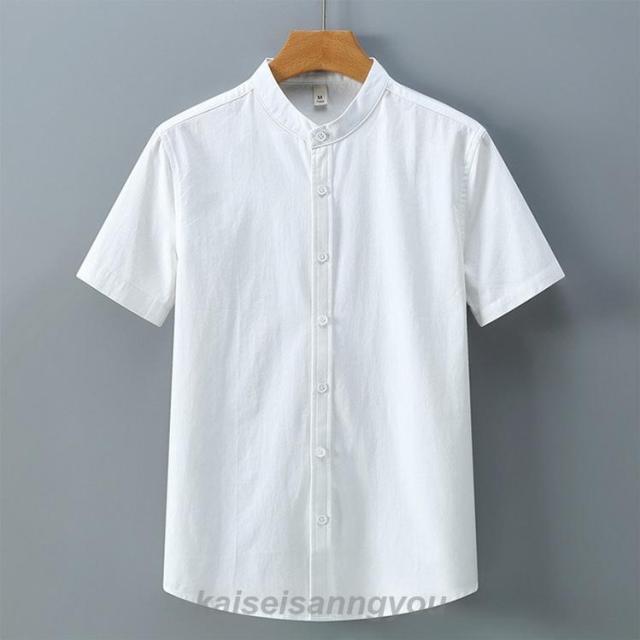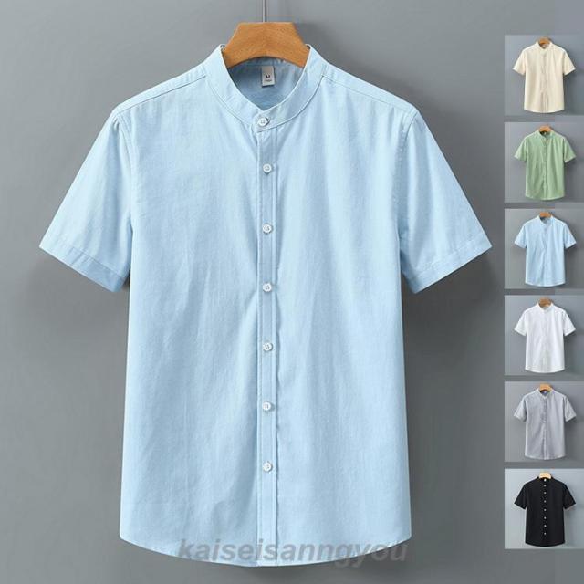 半袖シャツメンズスタンドカラーカジュアルシャツバンドカラーシャツ白シャツ涼しい冷感通勤通学夏