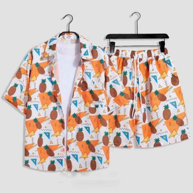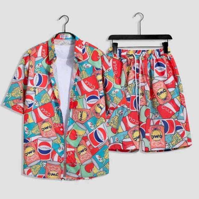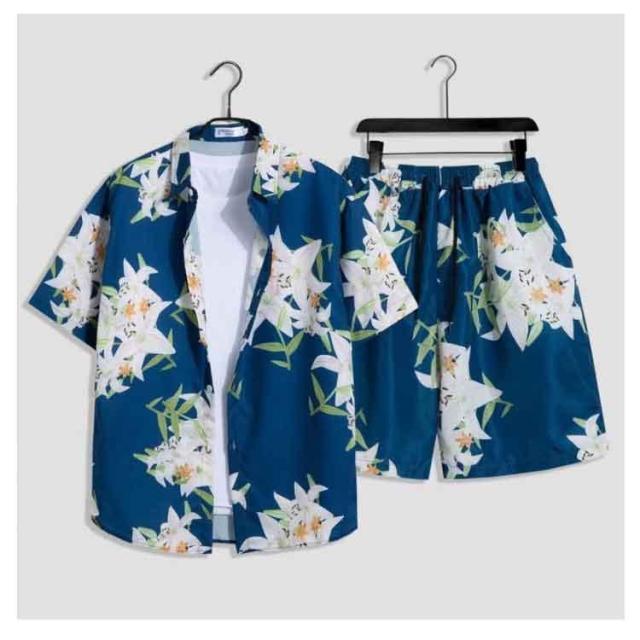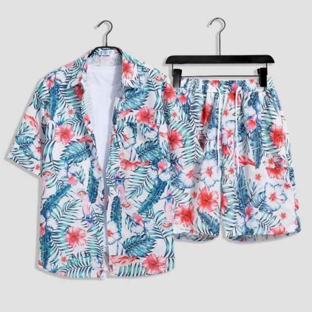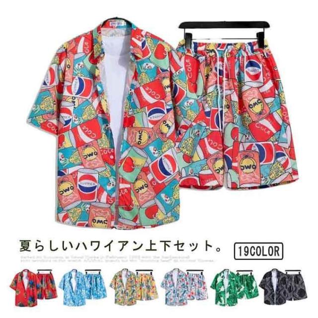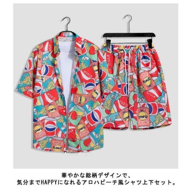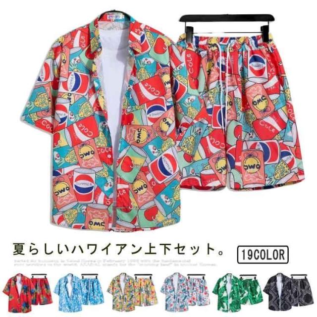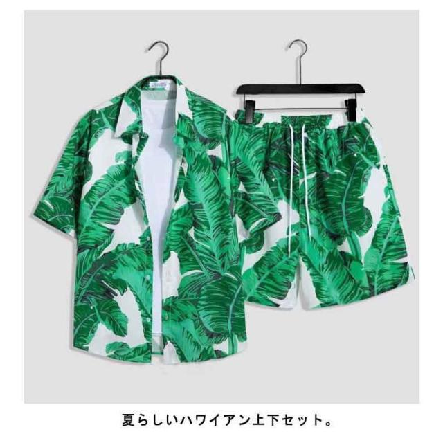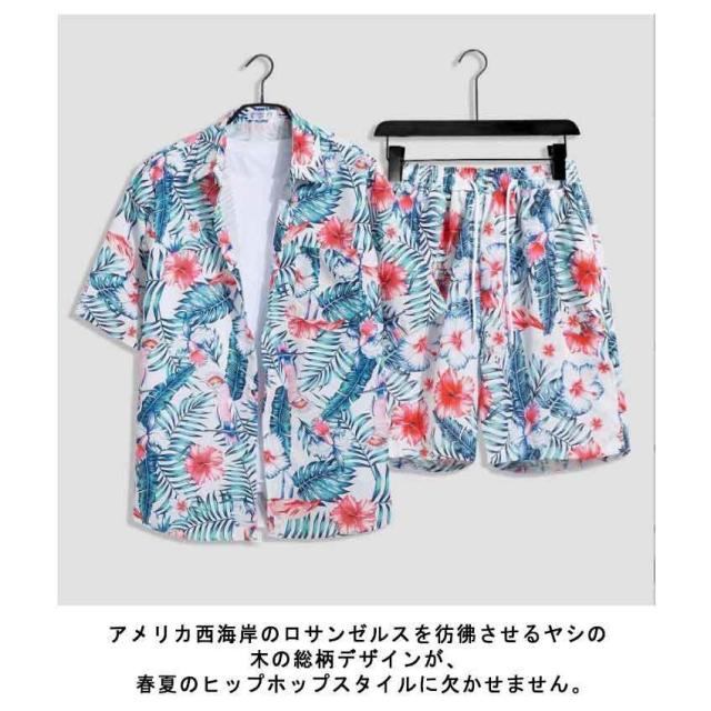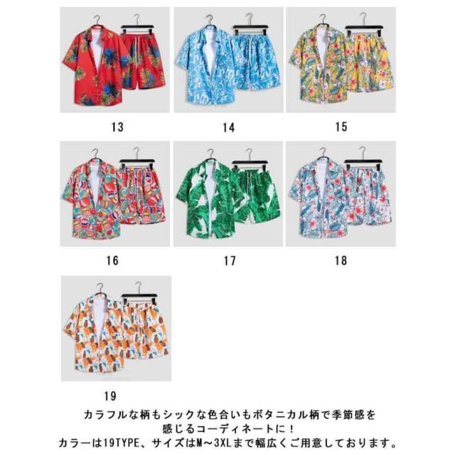 シャツ メンズ アロハシャツ ショートパンツ セットアップ 上下セット 半袖 ビーチシャツ アロハ ボタニカル 総柄 カジュアルシャツ きれいめ 夏