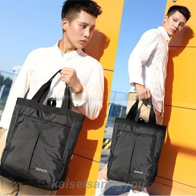 トートバッグ 縦型 メンズ 大容量 ビジネス ナイロン 軽量 丈夫 A B ファスナー開閉 撥水 通勤 通学 旅行