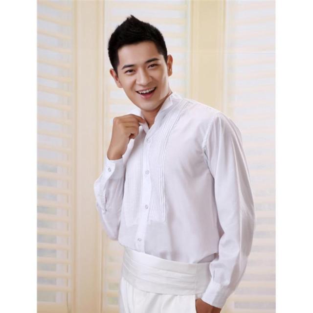 ピンタック入りの男性用ウィングカラーシャツです。
