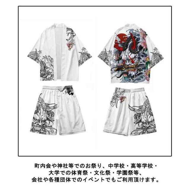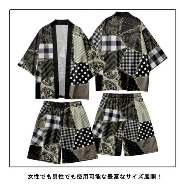 羽織:XXS バスト100 肩幅40 袖丈31 着丈66XS バスト104 肩幅42 袖丈32 着丈68S バスト108 肩幅44 袖丈33 着丈70M バスト112 肩幅406 袖丈34 着丈72L バスト116 肩幅48 袖丈35 着丈74XL バスト120 肩幅50 袖丈36 着丈762XL バスト124 肩幅52 袖丈37 着丈783XL バスト126 肩幅54 袖丈38 着丈804XL バスト130 肩幅58 袖丈40 着丈84 ショートパンツ:XXS ウェスト54 ヒップ92 着丈33XS ウェスト56 ヒップ94 着丈35S ウェスト58 ヒップ96 着丈37M ウェスト60 ヒップ98 着丈39L ウェスト62 ヒップ100 着丈41XL ウェスト64 ヒップ102 着丈432XL ウェスト66 ヒップ104 着丈453XL ウェスト68 ヒップ106 着丈474XL ウェスト70 ヒップ108 着丈49※サイズ表の実寸法は商品によって1-3cm程度の誤差がある場合がございます。