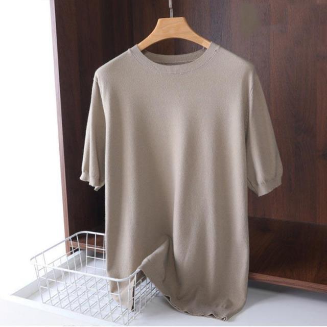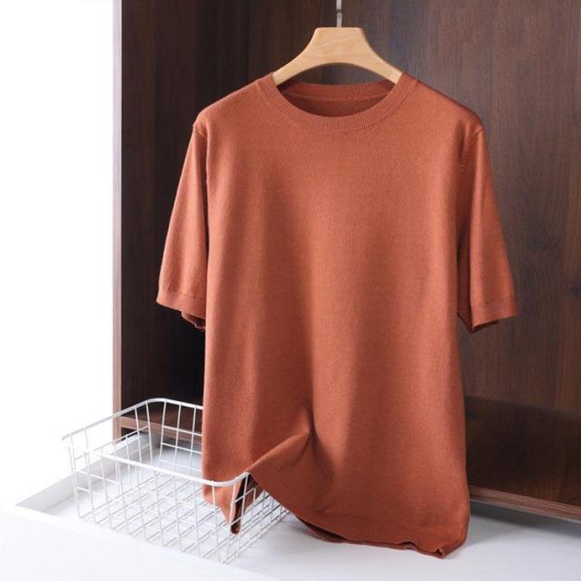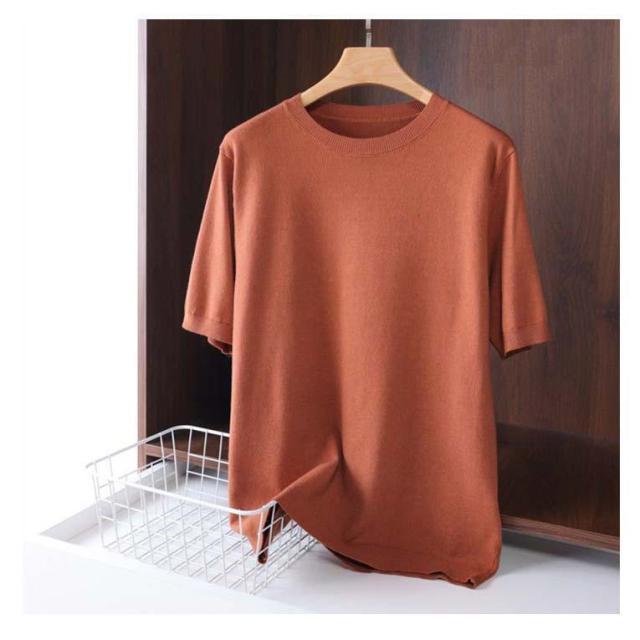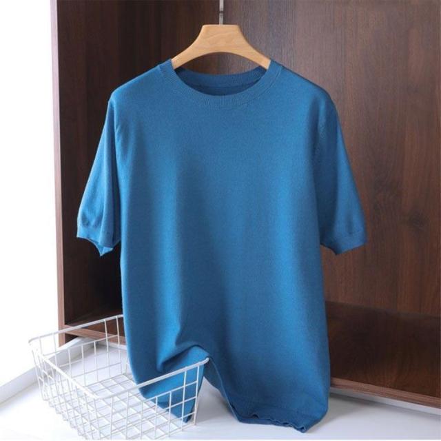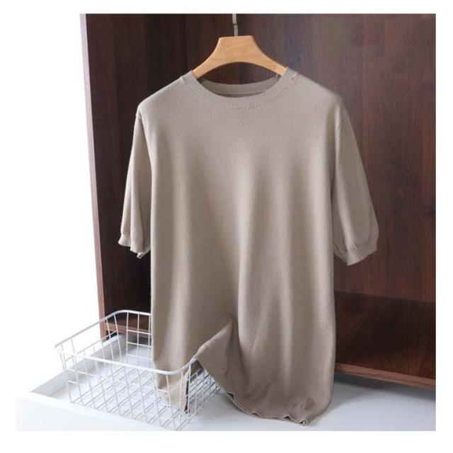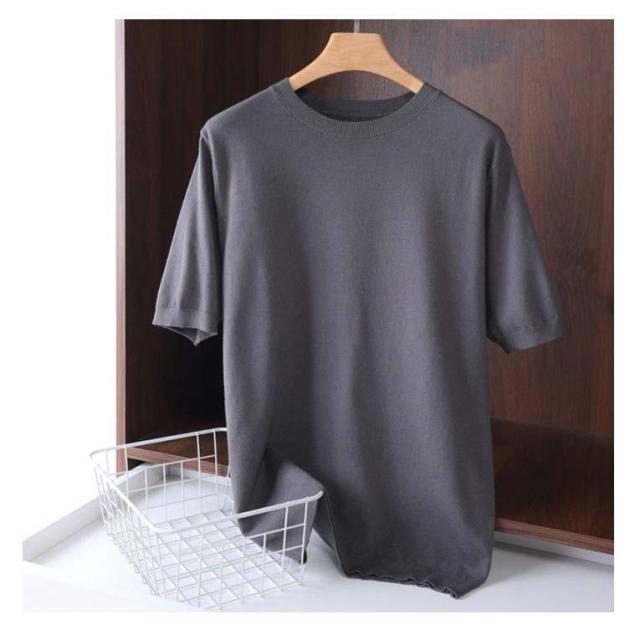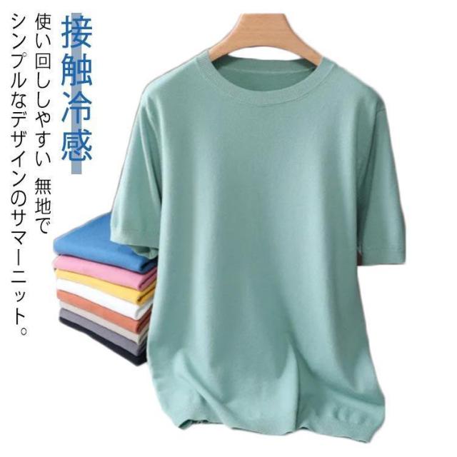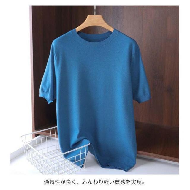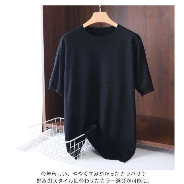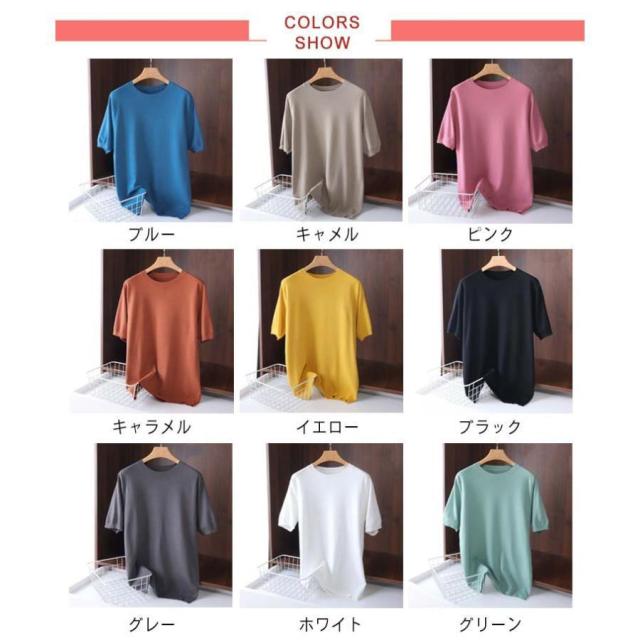 サマーニット ニット メンズ 接触冷感 夏 夏服 クルーネック 半袖 5分袖 大きいサイズ 半袖tシャツ アイスシルク プルオーバー 無地 ゆったり