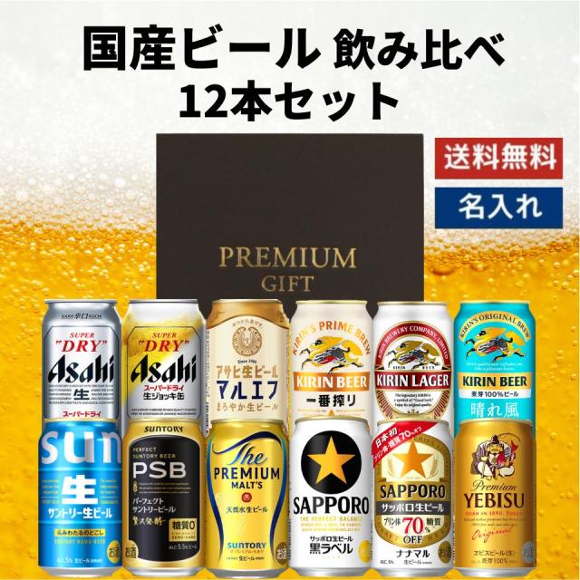 ビールギフト 国産ビール 飲み比べ 12本セット 詰め合わせ スーパードライ 生ジョッキ缶 マルエフ 一番搾り 晴れ風 キリンラガー 黒ラベル エビス ナナマル サン生 プレモル PSB 缶ビール ギフトセット 内祝い お返し 男性 60代 70代 80代