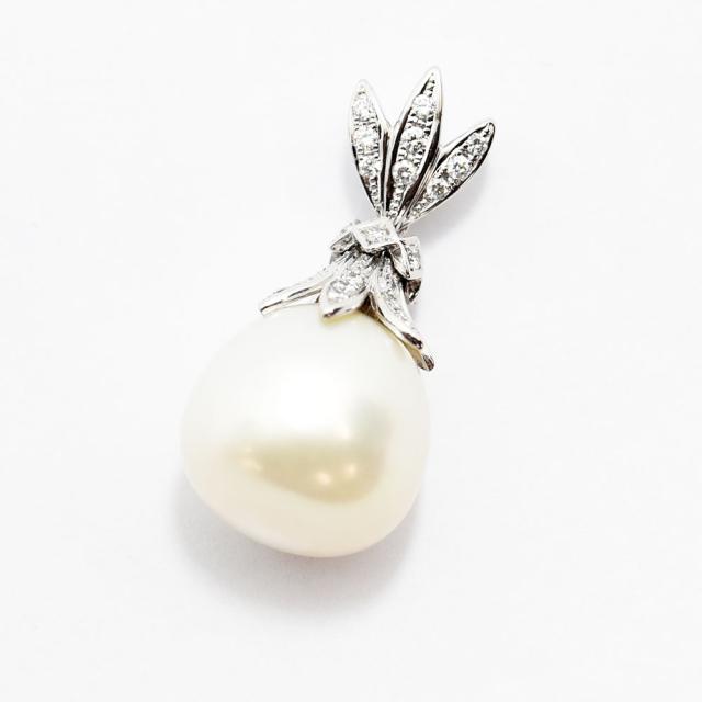 白蝶真珠 15.9mm ダイヤモンド 0.29 ペンダントトップ パール K18WG 新品磨き仕上げ 中古