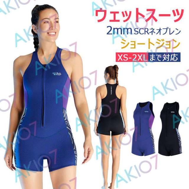 【2mm SCRネオプレン&ショートジョン】ウェットスーツ 無袖 一体型 ショートパンツ 水中作業 素潜り ダイビング サーフィン ウィンドサーフィン マリンスポーツ 水上活動 レディース 擦り傷防止 保温 日焼け防止 伸縮性