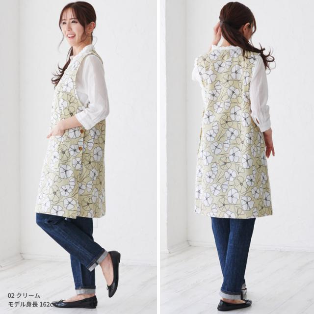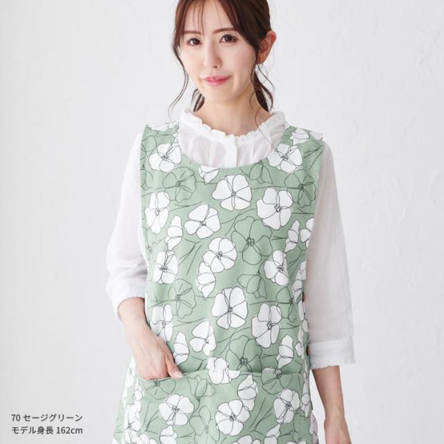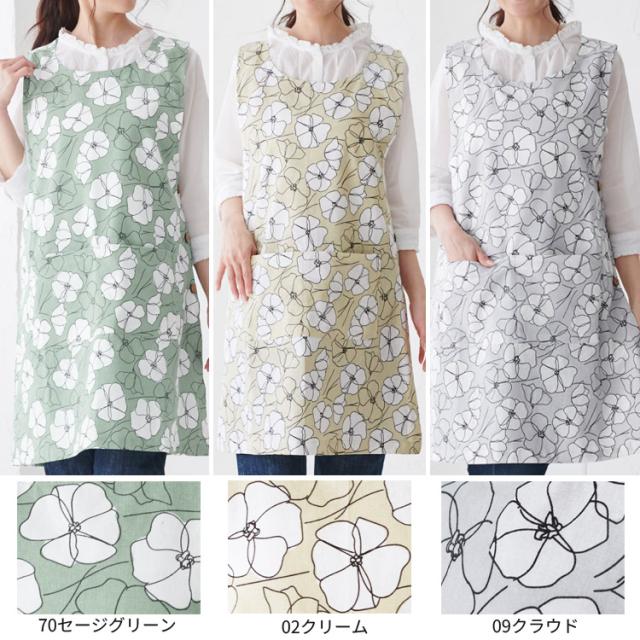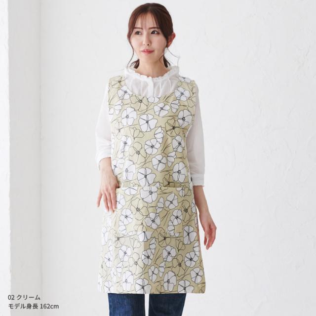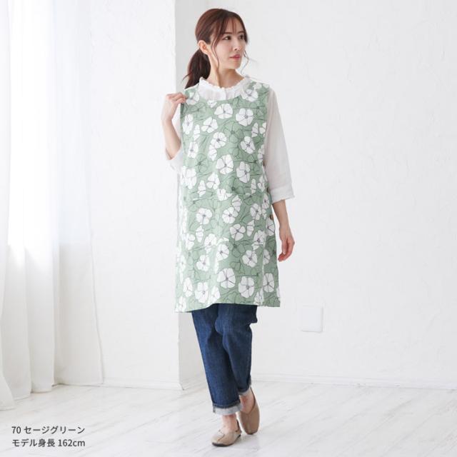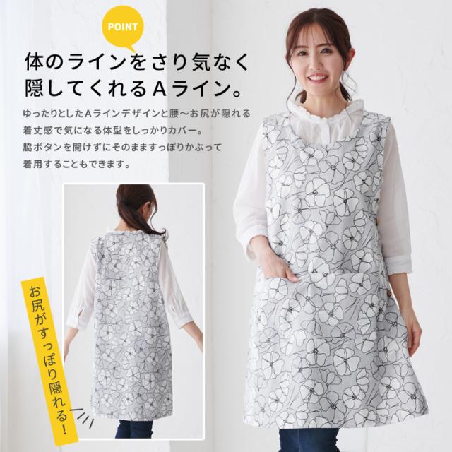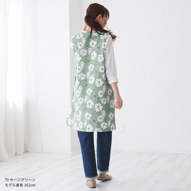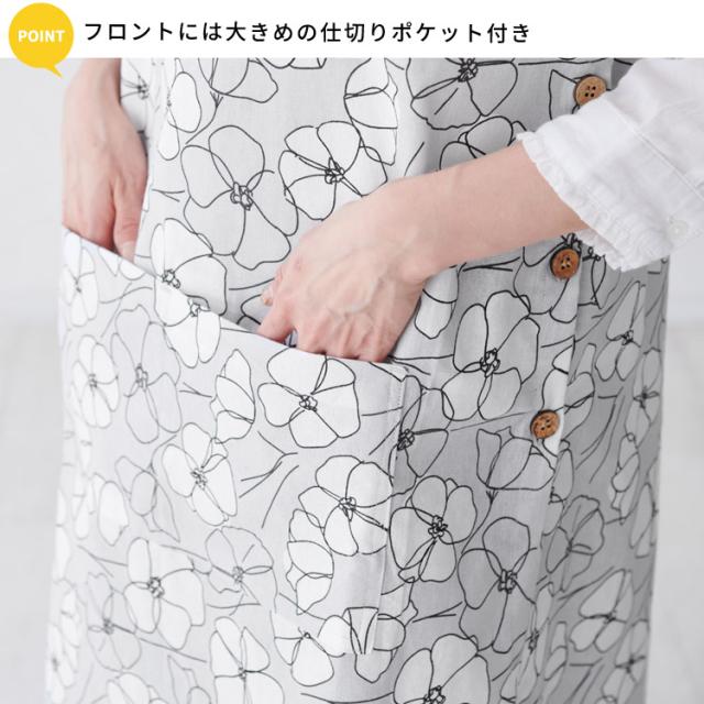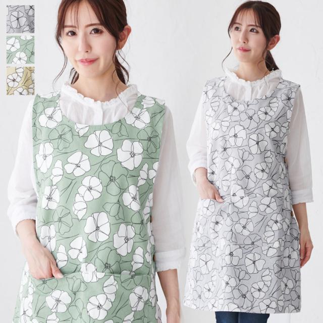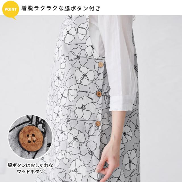 花柄エプロン ワンピース エプロン ゆったり 綿 コットン シンプル ロング ワンピースエプロン 保育士 おしゃれ かわいい 母の日 花柄 花 フラワー ギフト プレゼント お尻が隠れる 春夏