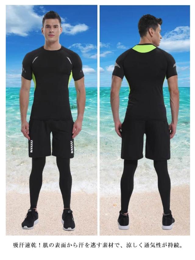 | メンズ フィットネス水着3点セット ソフトな肌触りの冷感素材を使用、良い着心地と抜群の耐久性、ストレッチが効いているので動きやすい。 吸汗速乾!肌の表面から汗を逃す素材で、涼しく通気性が持続。 洗濯後も速く乾きになり、着替えに便利。 速乾性で海やプール、アウトドアでの日焼け予防はもちろん、ランニング等の運動やタウンユースでも大活躍!また、ケガから身を守る為にもラッシュガードは必要アイテム! | |