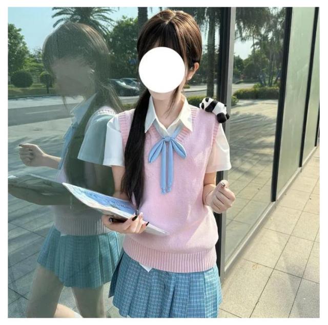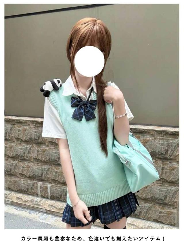 ニットベスト 女子高生 夏用 スクールベスト グレー スクール 無地 制服 韓国制服 Vネック 制服アレンジ レディース 高校生 中学生 定番 ベスト 定番 黒 紺 ベージュ 夏用 涼しい コスチューム 学生服 通学 イベント