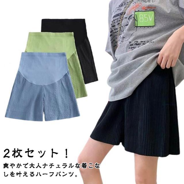 夏 マタニティ ハーフパンツ 接触冷感 涼しい 2枚セット マタニティウェア ショートパンツ ルームウェア スポーツ 部屋着 薄手 ウェア 妊婦服 半ズボン ハイウエスト 2枚セット アジャスター付き 短パン ショーパン 妊娠 産前産後 らくちん