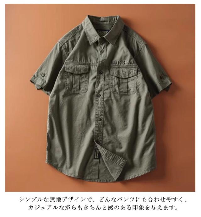 綿混 アメカジ シャツジャケット ミリタリーシャツ 半袖 ミリタリー 送料無料 カジュアルシャツ スリム メンズ 夏物 ワークシャツ 無地 メンズファッション 大きいサイズ シャツジャケット コットンシャツ 送料無料 ポケット付き トップス