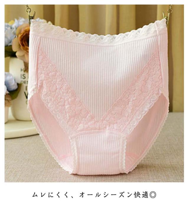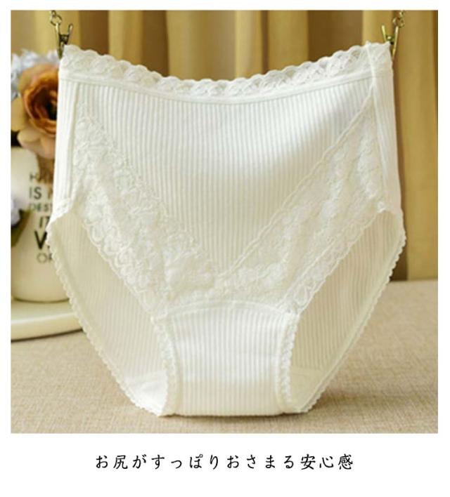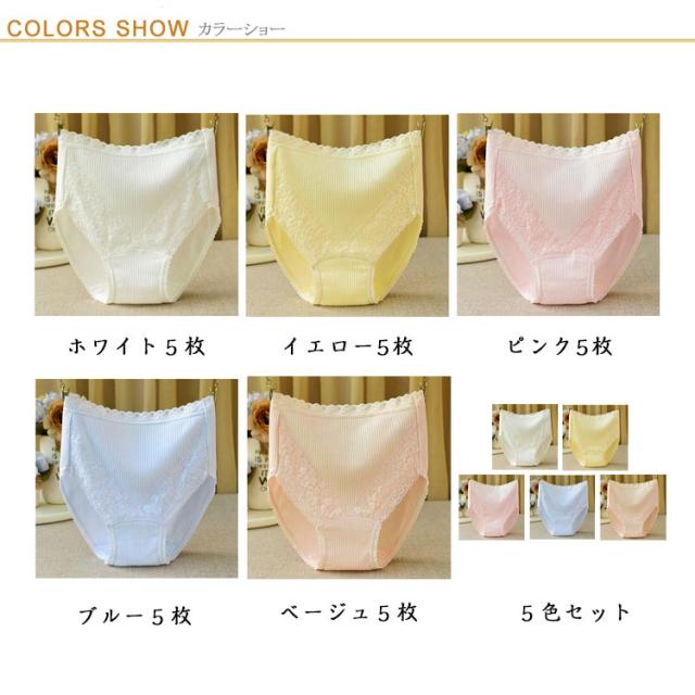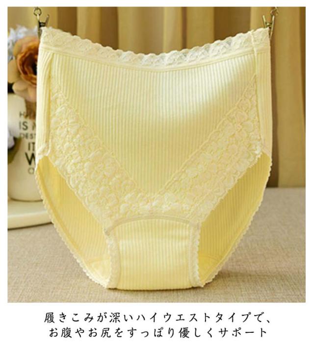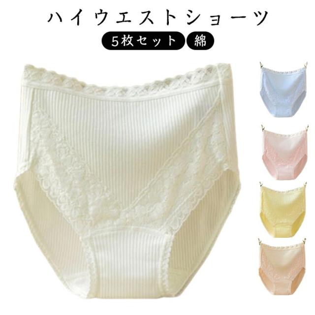 コットン ショーツ 5枚セット ショーツ ハイウェスト おしりすっぽり 綿 レース リブ ストレッチ スタンダード ショーツ 深め 下着 深履き インナー