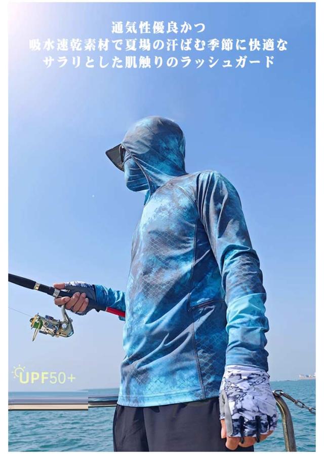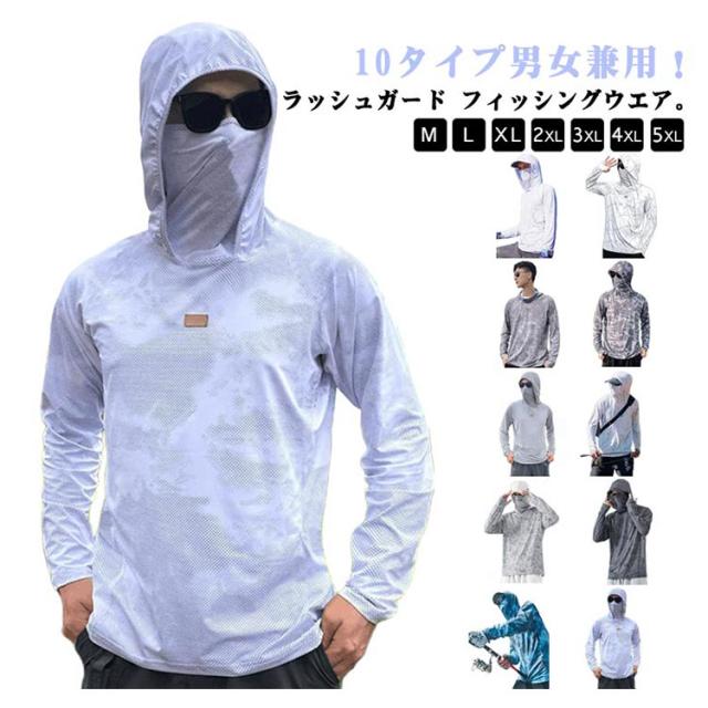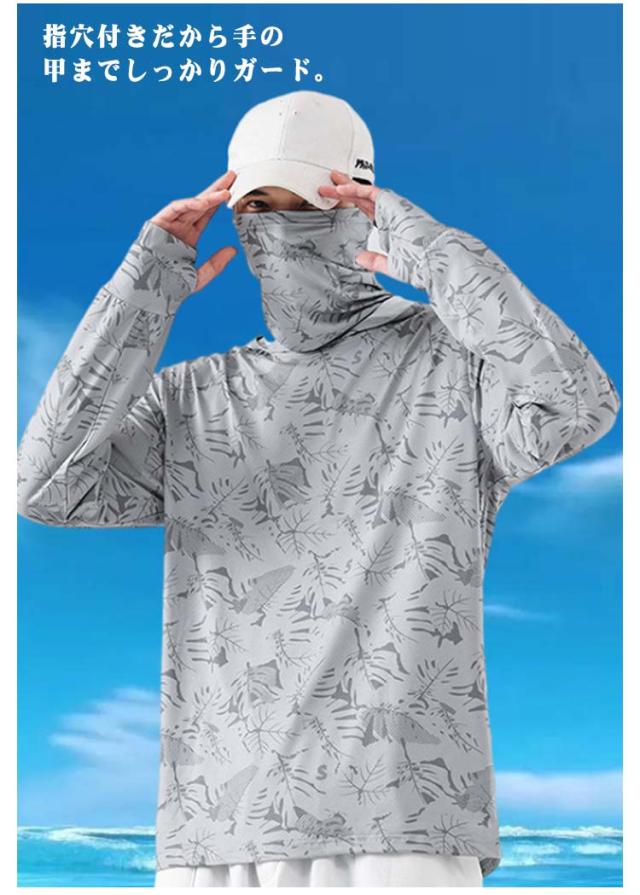 パーカー フード メンズ キャンプ 伸縮性 フェイスカバー付き レディース 長袖 ラッシュガード UVカット UV 通気性 フィッシングウエア お釣り 大きいサイズ 登山 アウトドア 海 旅行 UV対策 ゴルフ 釣り 自転車 速乾性 紫外線対策 ラッシュガード 春 夏 涼しい